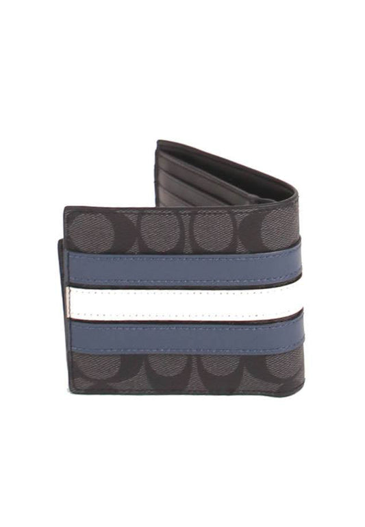 Coach Signature 3 In 1 3008 Wallet With Varsity Stripes In Charcoal Black