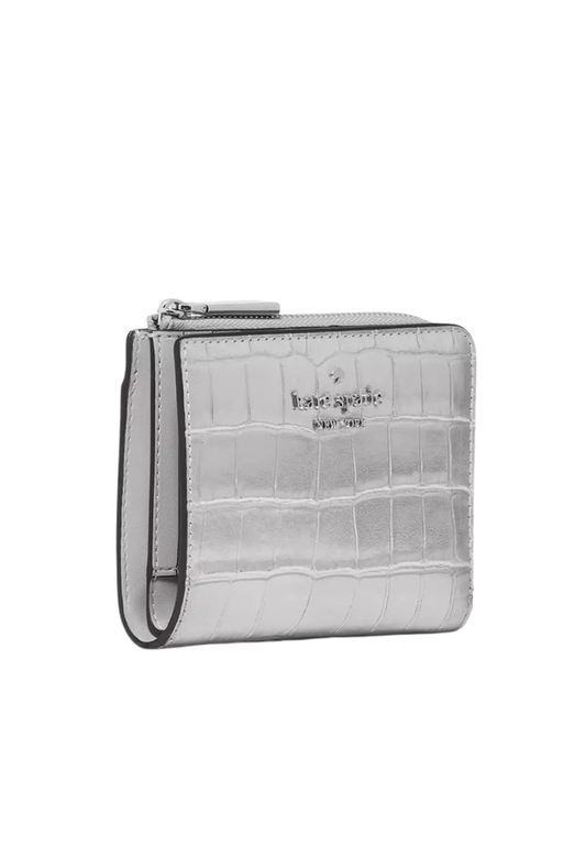 Kate Spade Madison Croc Embossed Small L-Zip Wallet In Silver KM622