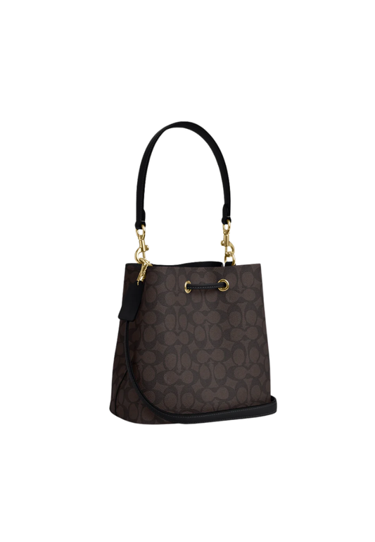 ( PREORDER ) Coach Rowan In Signature Canvas Bucket Bag In Walnut Black CBH07