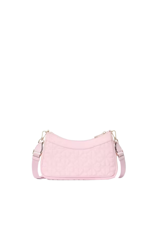 ( AS IS ) Kate Spade Spade Flower Quilted Nylon Convertible Shoulder Bag In Pink Horiz KK077