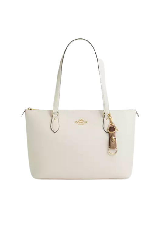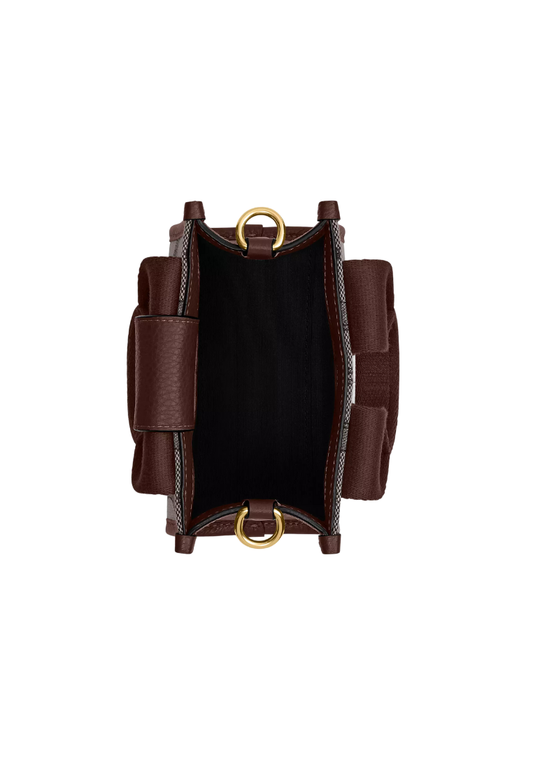 ( PREORDER ) Coach Mini Warner Tote Bag In Signature Canvas Charm In Tan Black CBK64