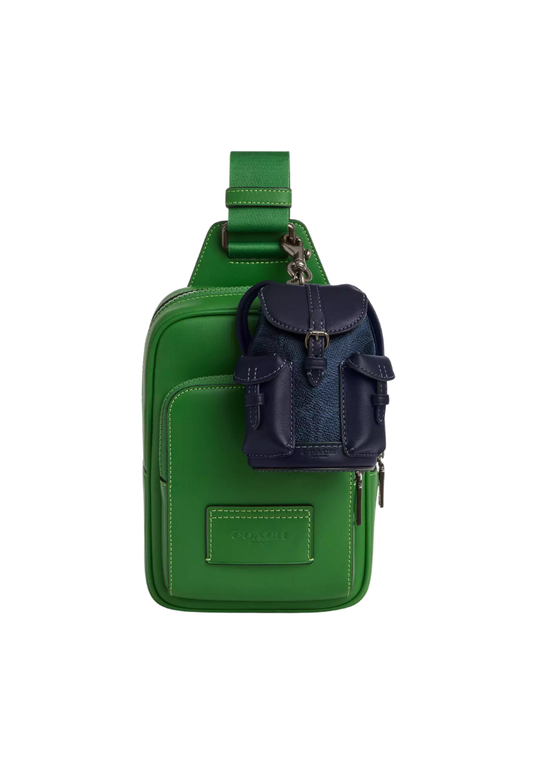 ( PREORDER ) Coach Mini Trekker Bag In Signature Canvas Charm In Gunmetal Charcoal Black CBK63