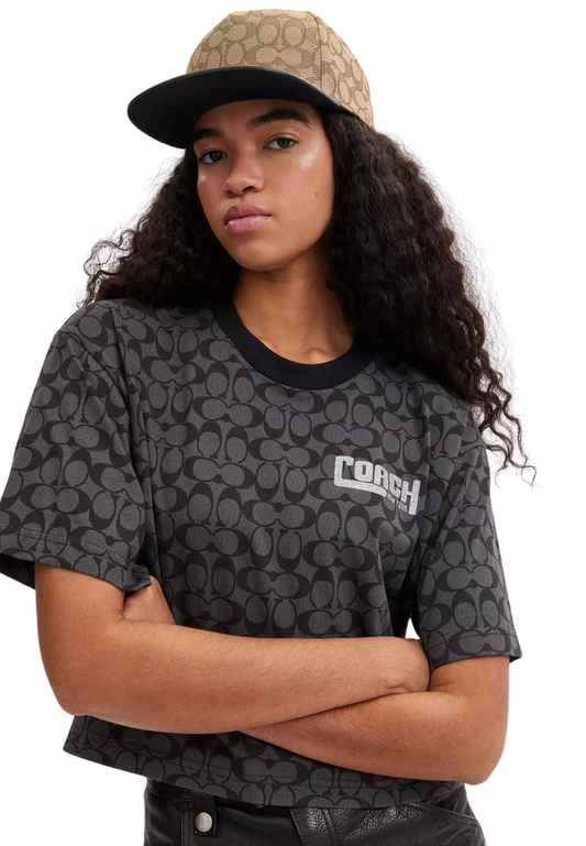 ( PREORDER ) Coach Signature Jacquard Flat Brim Hat In Khaki Black CW764