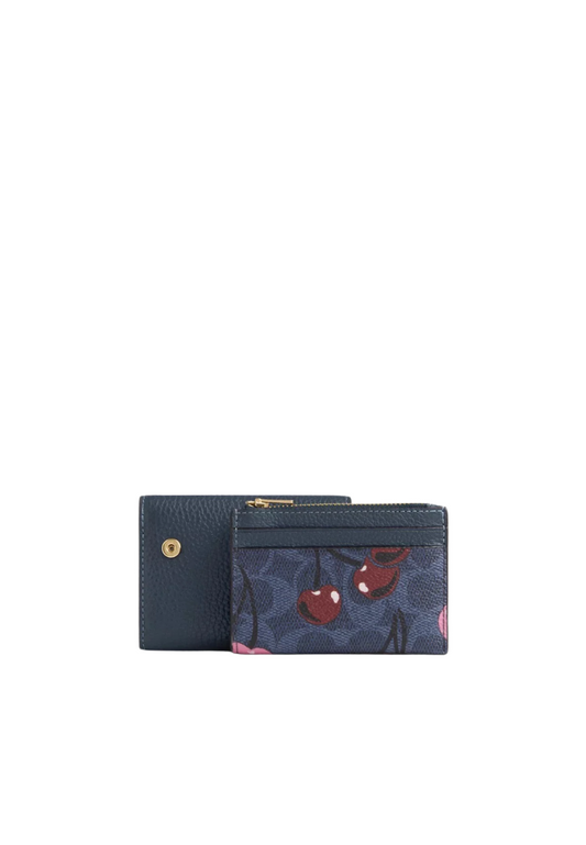 Coach Card Holder Wallet Signature Canvas With Cherry Print In Denim Multi CZ448