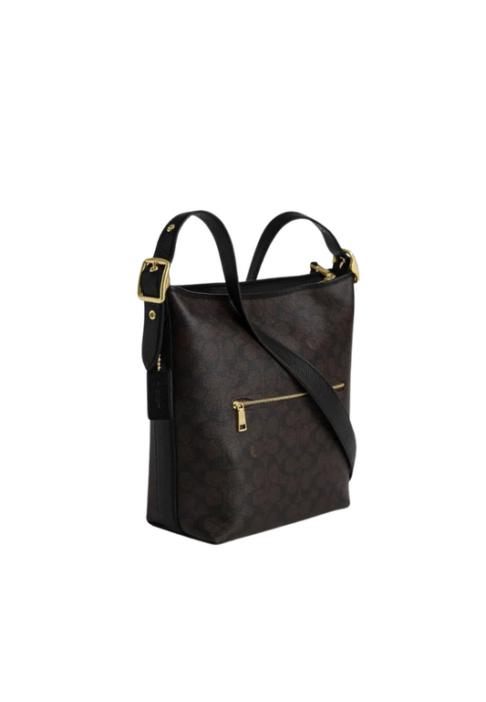 Coach Val Duffle Crossbody Bag Signature Canvas In Walnut Black CAB12