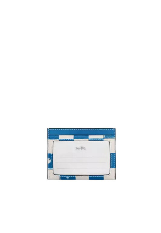 Coach Slim Id Card Case With Checkerboard Print In Bluejay Chalk CR396