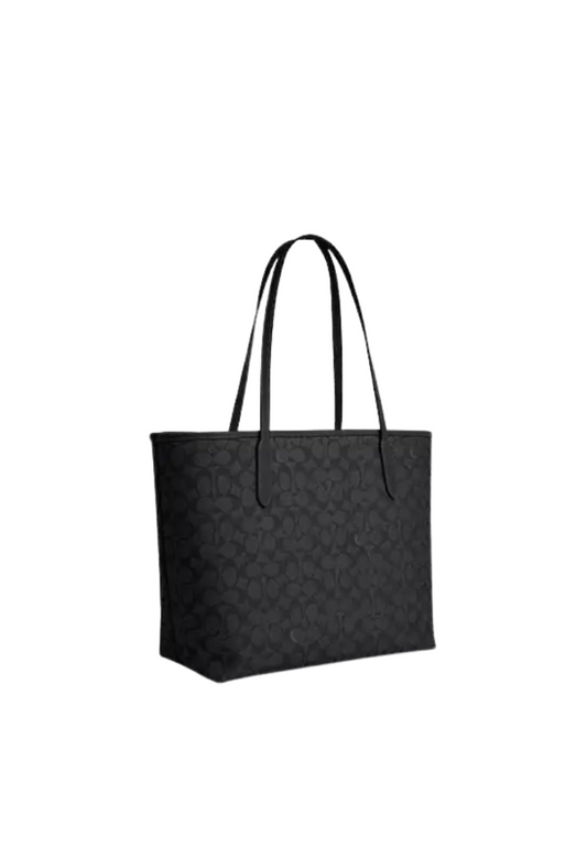 Coach City In Signature Canvas Tote Bag In Charcoal Black CV976