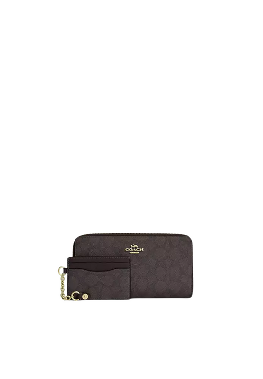 Coach Long Zip Around Wallet With Detachable Card Case In Signature Canvas In Walnut Black Cbz99