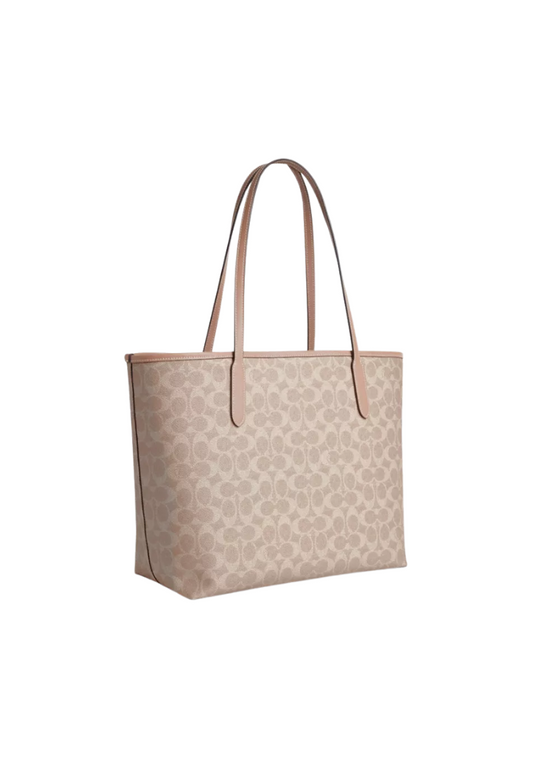 Coach City Tote Bag Signature Canvas In Sand Taupe CV976