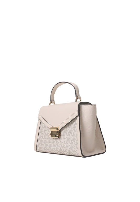 Michael Kors Whitney Medium Flap Logo Top Handle Satchel Bag In Light Cream Multi 35R4GWHS2B