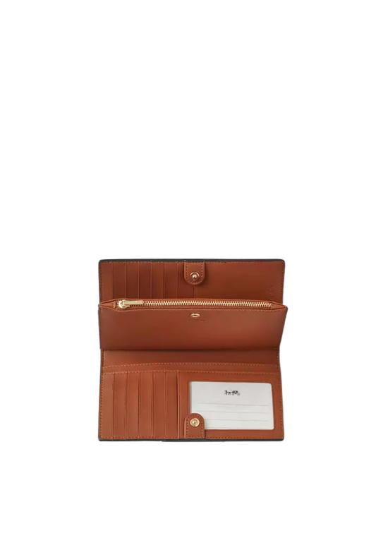 Coach Slim Zip Wallet Signature Canvas With Stripe In Tan Black CW946