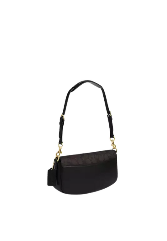 Coach Andrea Shoulder Bag Signature Canvas In Walnut Black CV973