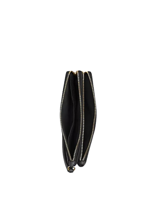 Coach Double Zip Wristlet Signature Canvas In Walnut Black CX161