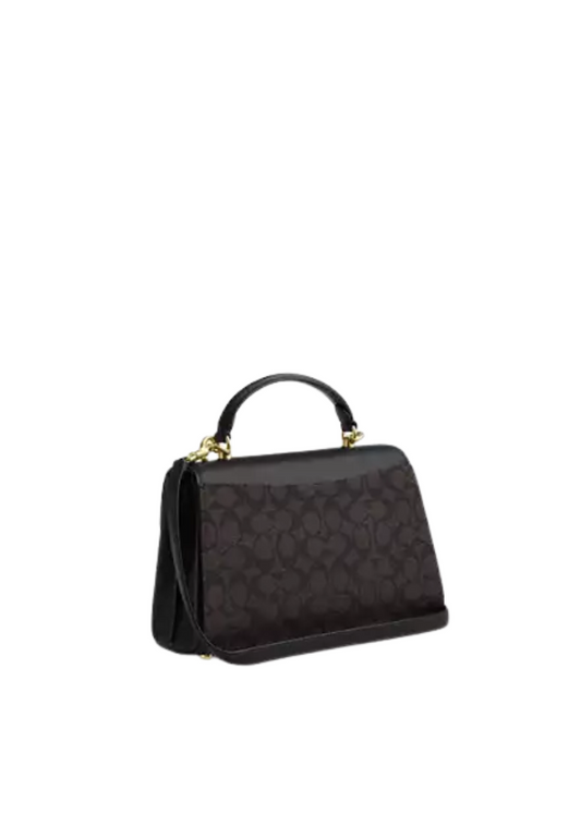 Coach Eliza Signature Canvas Top Handle Bag In Walnut Black CW012