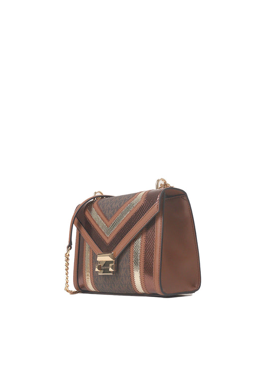 Michael Kors Whitney Medium Logo and Metallic Shoulder Bag In Luggage Multi 35F4GWHL6M