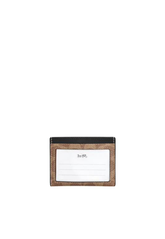 Coach Slim ID Card Case Signature Canvas In Tan Black CW366