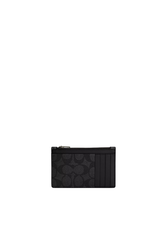 Coach Zip Card Case Signature In Charcoal Black CV764