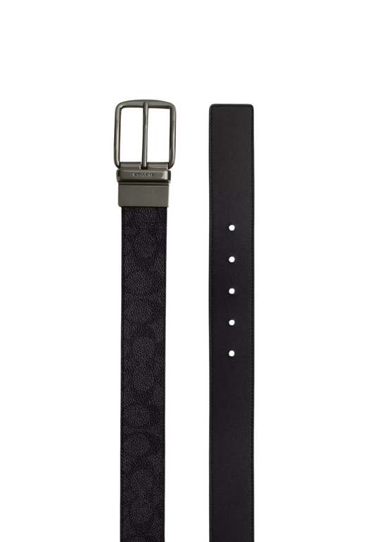 Coach Boxed Plaque And Harness Buckle Cut To Size Reversible Belt In Charcoal Black CW362