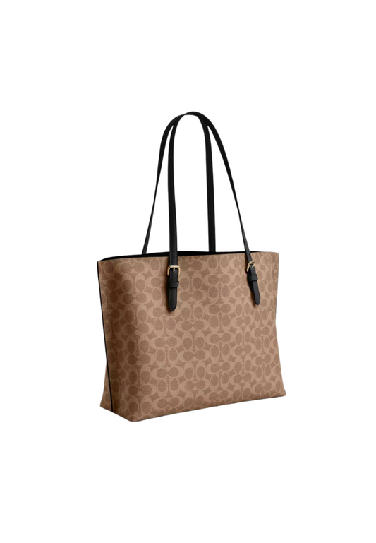 Coach Mollie In Signature Canvas Tote Bag In Tan Black CV967