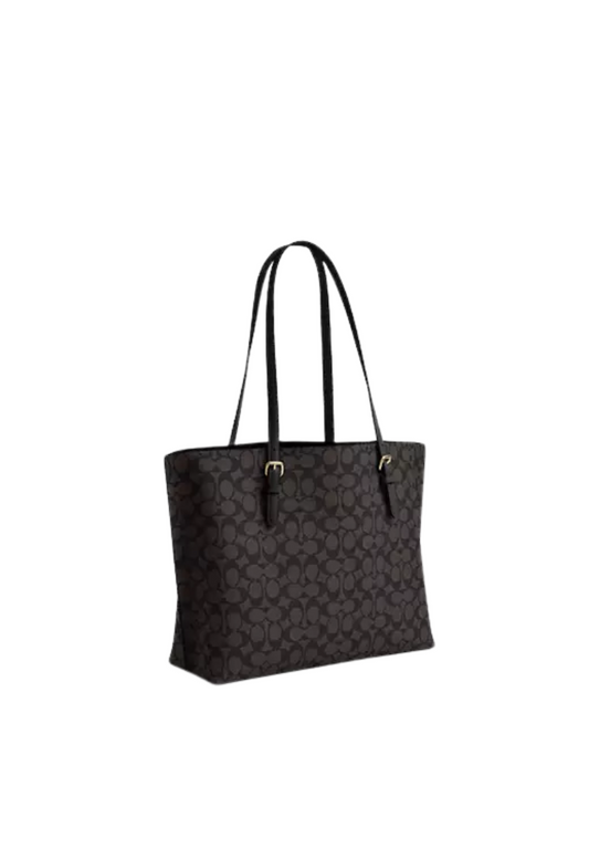 Coach Mollie In Signature Canvas Tote Bag In Walnut Black CV967