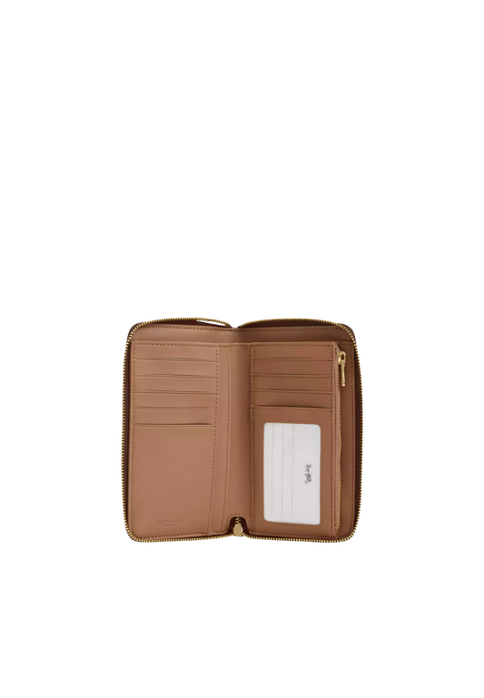 Coach Medium ID Zip Wallet Signature Canvas In Tan Brown CW781