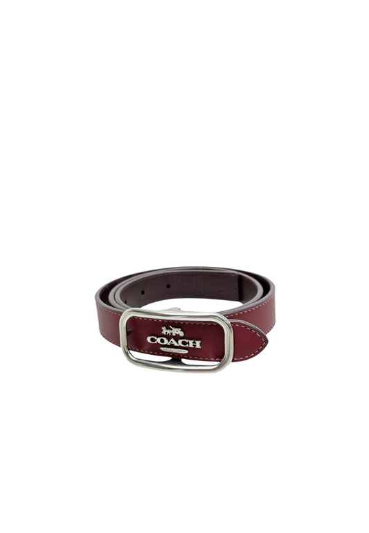 Coach Morgan Rectangle Buckle Belts In Silver Wine Oxblood CE969