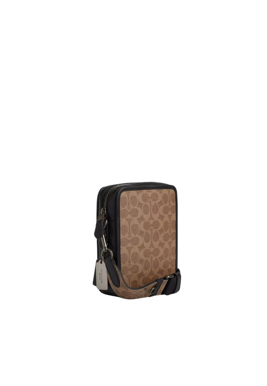 Coach Sullivan Pack Crossbody Bag Signature Canvas With Patches In Tan Multi CY819