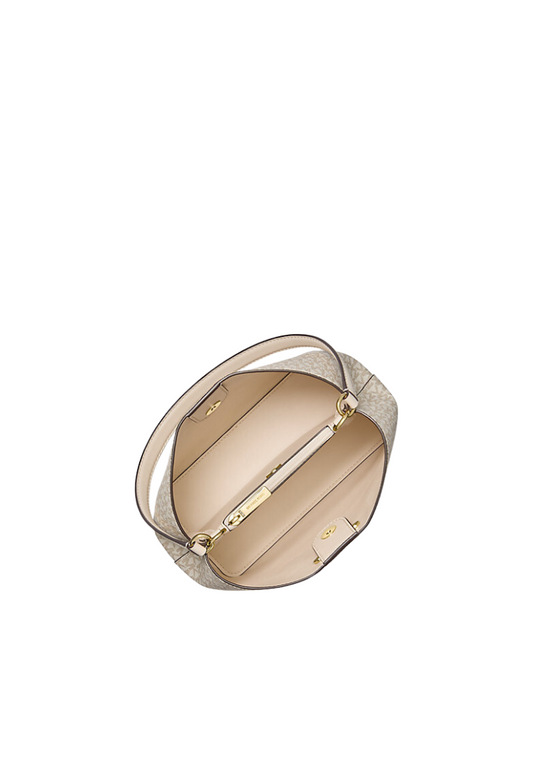 Michael Kors Pratt Medium Signature Logo and Metallic Shoulder Bag In Pale Gold 35F4G3FS2V