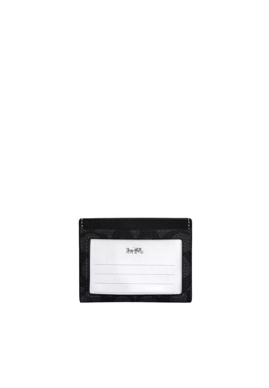 Coach Slim ID Card Case Signature Canvas In Charcoal Black CW366