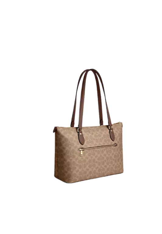 Coach Gallery Tote Bag Signature Canvas In Tan Brown CW381