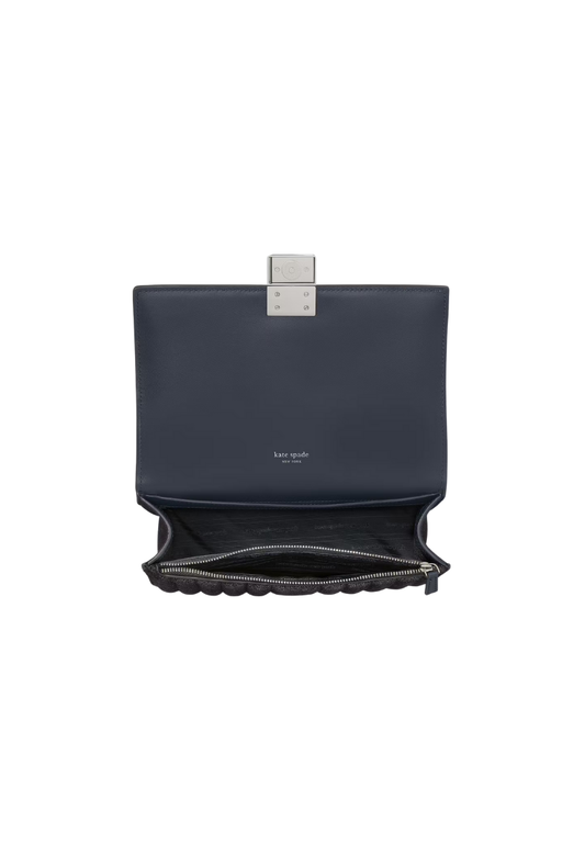 ( PREORDER ) Kate Spade Deco Quilted Glitter Suede Mini Flap Chain Crossbody Bag In Navy Multi KJ654