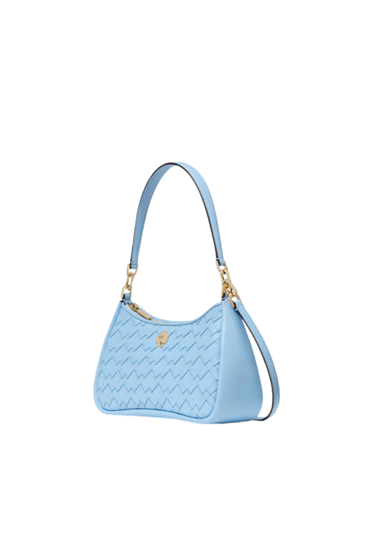 ( PREORDER ) Kate Spade Kayla Woven Leather Small Convertible Shoulder Bag In Montauk Blue KL026