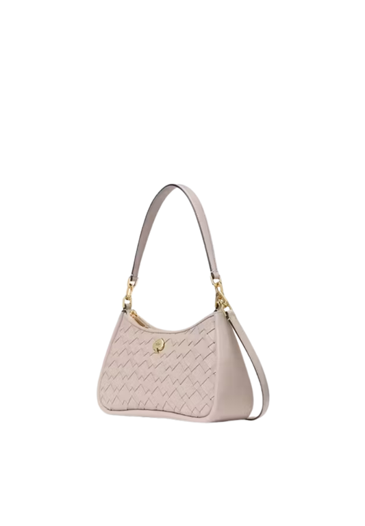( PREORDER ) Kate Spade Kayla Woven Leather Small Convertible Shoulder Bag In Cozy Grey KL026