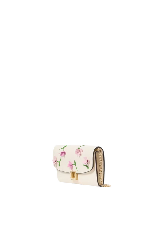 Kate Spade Phoebe Floral Applique Turnlock Wallet On Chain In Meringue Multi KK251