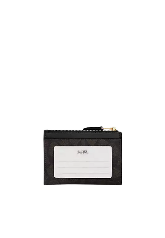 Coach Mini Skinny Id Signature Canvas Card Case In Walnut Black CW870