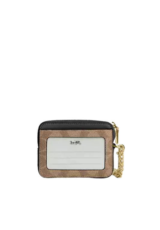 Coach Zip Signature Canvas Card Case In Tan Black CW883