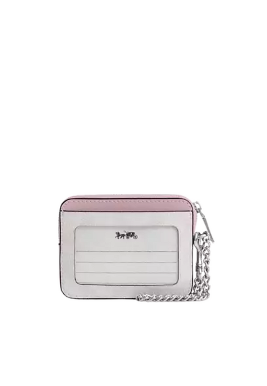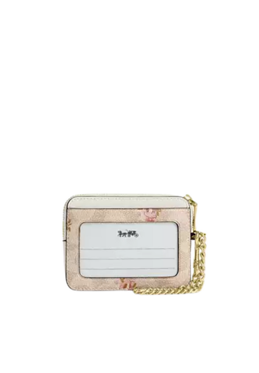 Coach Zip Signature Canvas Card Case In Chalk Carnation CW883