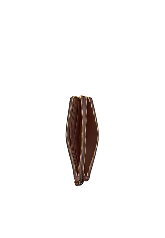 Coach Double Zip Signature Canvas Wallet In Tan Brown CX161