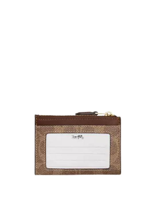 Coach Zip Signature Canvas Card Case In Sand Taupe CW883