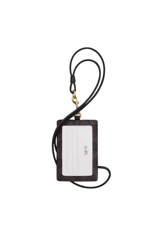 Coach ID Signature Canvas Lanyard In Walnut Black CZ285