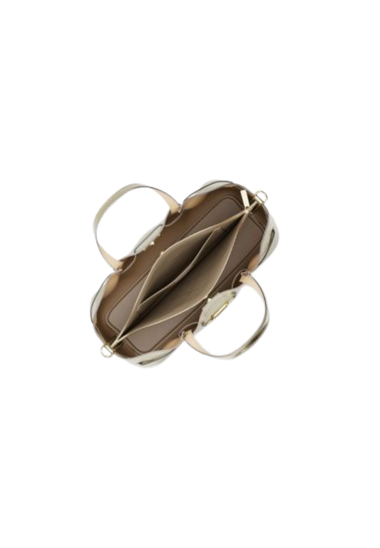 ( PREORDER ) Michael Kors Carson Medium Metallic Logo Debossed Satchel Bag In Pale Gold 35R6G2ZS7M