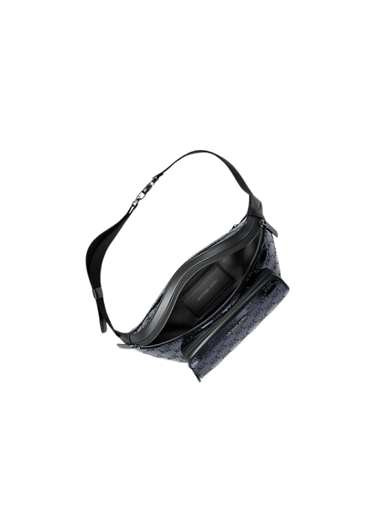( PREORDER ) Michael Kors Cooper Medium Pebbled Leather and Signature Logo with Pouch Sling Pack In Black 37R6LCOC8L