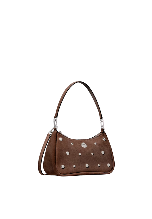 ( PREORDER ) Kate Spade Kayla Suede Studs Small Convertible Shoulder Bag In Hot Fudge KM670