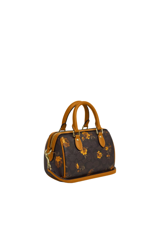 ( PREORDER ) Coach Mini Rowan In Signature Canvas With Floral Print Crossbody Bag In Walnut Yellow CCF31