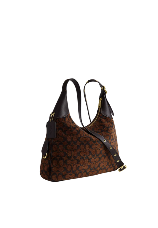 ( PREORDER ) Coach Ella In Signature Chenille Shoulder Bag In Gold CCE49