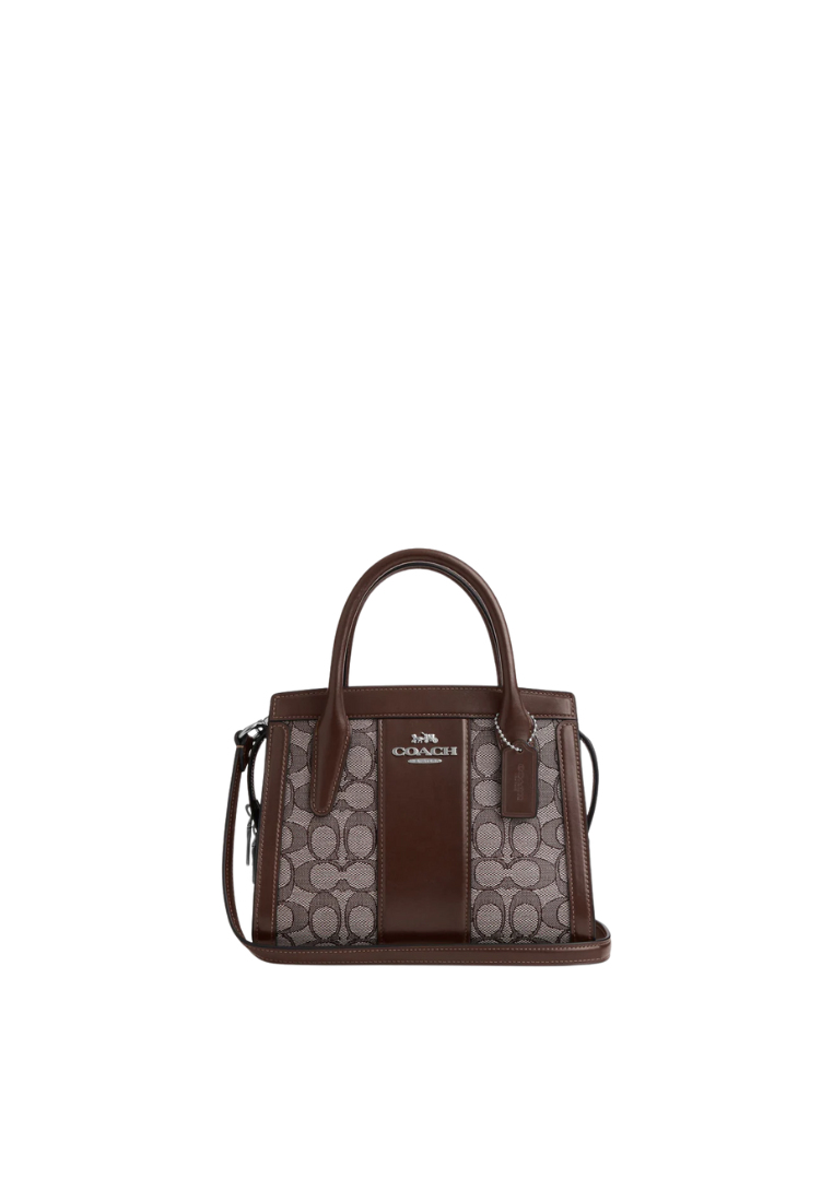 ( AS IS ) Coach Andrea Carryall Handbag Signature Jacquard In Oak Maple CT766