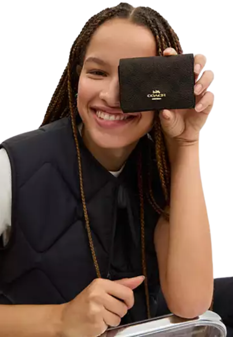 ( AS IS ) Coach Card Holder Wallet In Blocked Signature Canvas In Walnut Tan CZ446