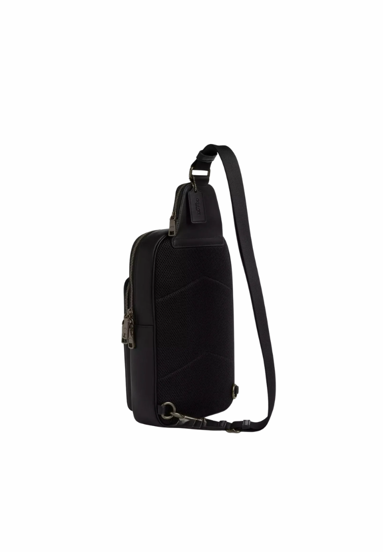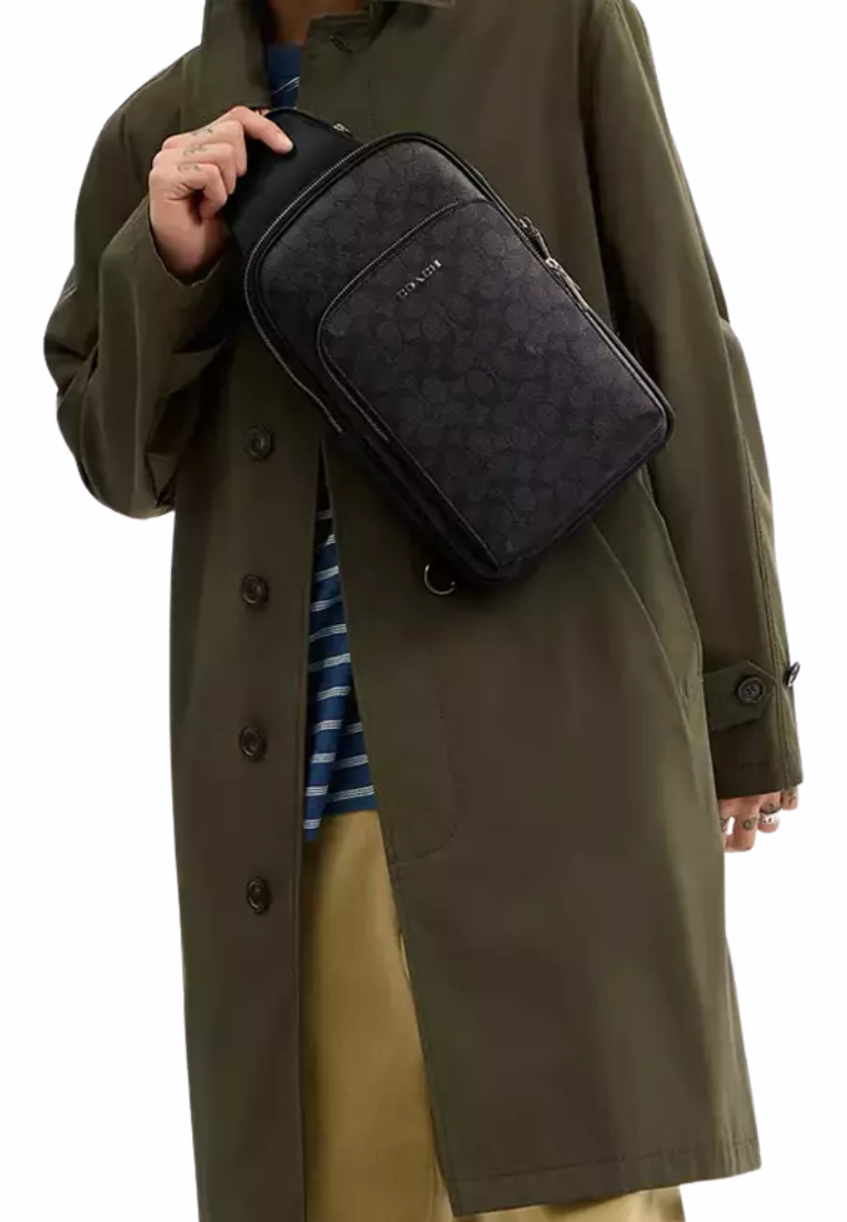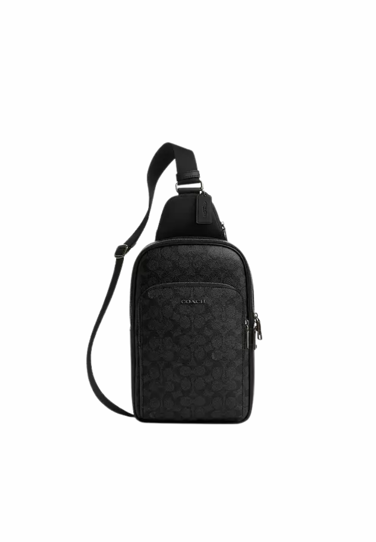( AS IS ) Coach Ethan Pack In Blocked Signature Canvas Sling Bag In Charcoal Black CZ393