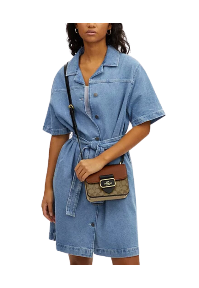 ( AS IS ) Coach Morgan Square Crossbody Bag Colorblock Signature Canvas In Khaki Multi CL462