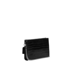 Fabric lining, Zip-top closure, Two credit card slots, Chain strap with 22.5" drop